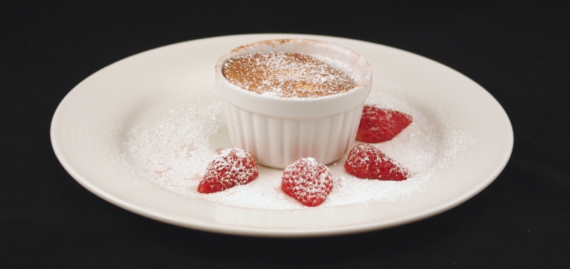 - Roer een gedeelte van het soufflébeslag door een gedeelte van de eiwitten en spatel er vervolgens alle eiwitten door; zodat een luchtige massa ontstaat. Vul de soufflé bakjes met behulp van een spuitzak met dit mengsel.