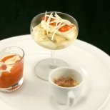 - Zet de glaasjes en het schaaltje op een bord.