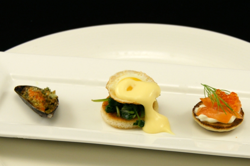 1. Leg de 3 amuses op een langwerpig bordje en serveer uit.