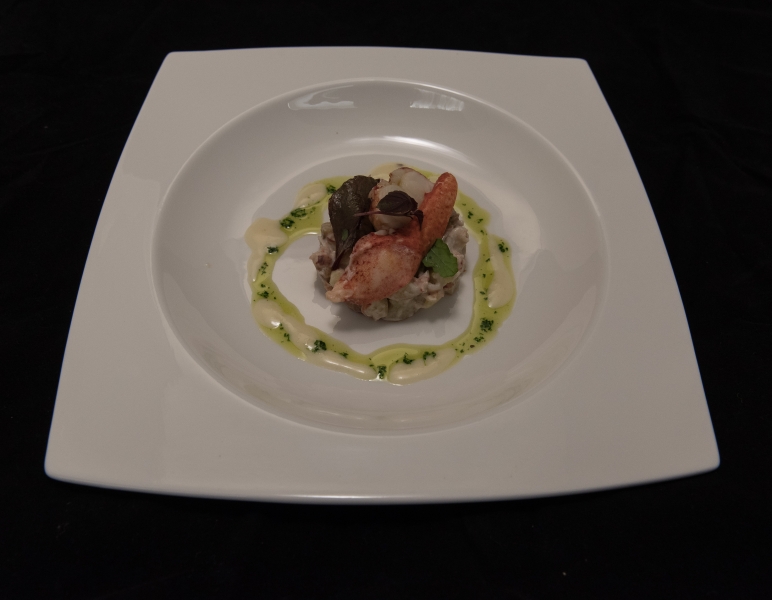 - Leg er wat pluksels aangemaakte sla op en als laatste mooie stukken kreeft.