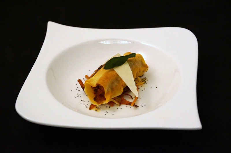 - Verdeel het vlees over de pasta vellen en rol ze op.