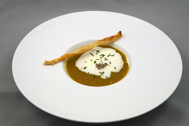 - Werk af met de geslagen room en garneer met wat fijngeknipte bieslook.