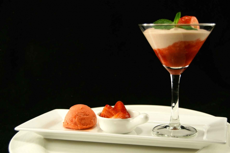 - Leg een bolletje aardbeiensorbet op een bordje.