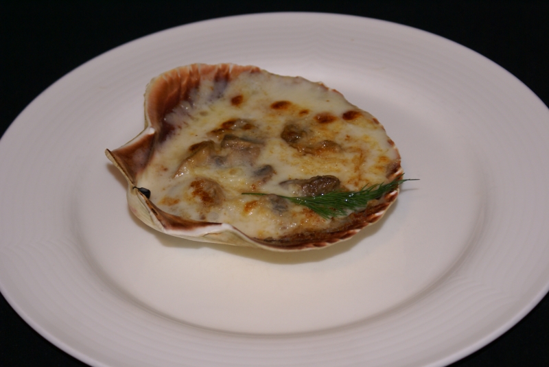 - Leg op een bord een schelp en garneer met een takje dille.
