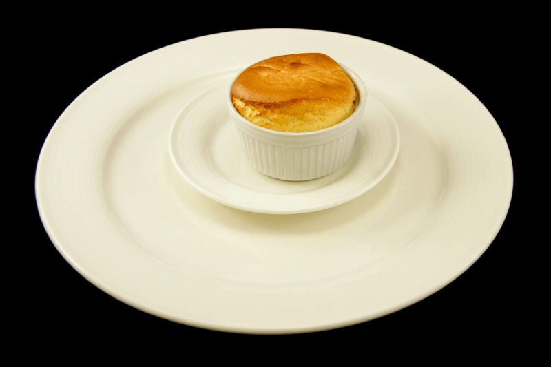 - Bak de soufflés in de Rational zonder hete lucht op 180 à 200 gr in ca 20 minuten af. Ze rijzen dan mooi boven de potjes uit.
