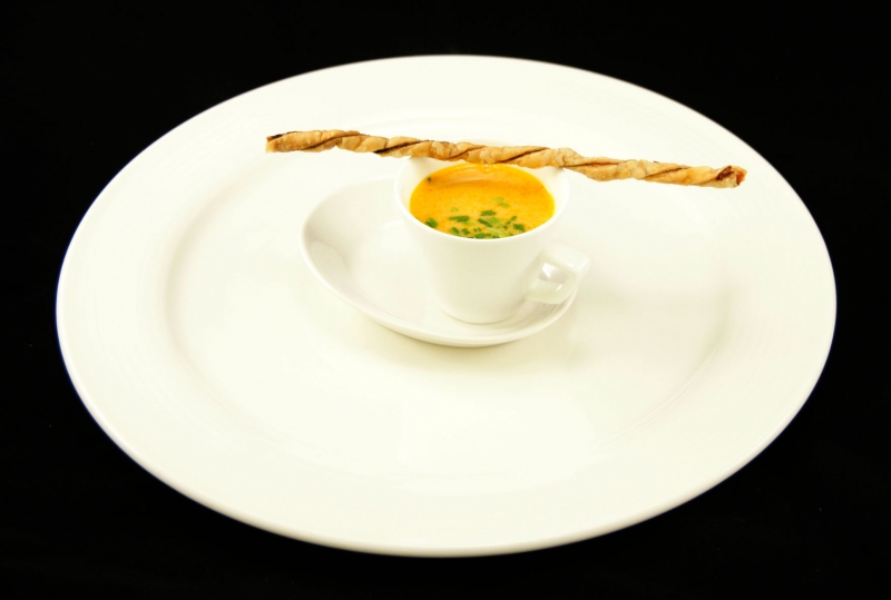 - Serveer in een amuse kopje en garneer af met fijngeknipte bieslook.