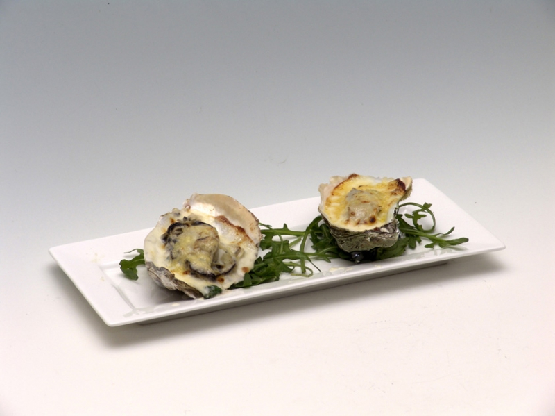 - Leg de schelpen op twee bakblikken van de steamer druk ze stevig recht op in banen opgefrommeld aluminium folie Leg in ieder schelp wat spinazie. Leg daar op een oester en overgiet de schelp met de dikke saus.