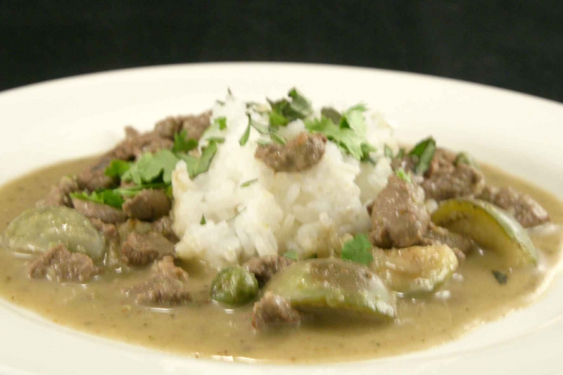 - Voeg eventueel nog groene currypasta (in pot) naar smaak toe.