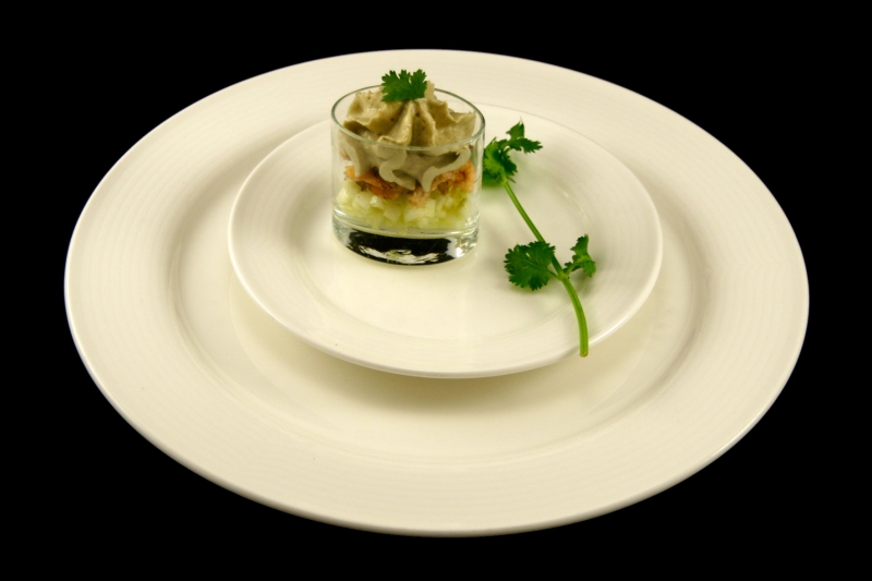 Hollandse garnalen met granny Smith salade en avocado-korianderschuim
