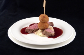 Kalfshaas met rode wijn-portsaus, witlof balletje met knolselderijpuree