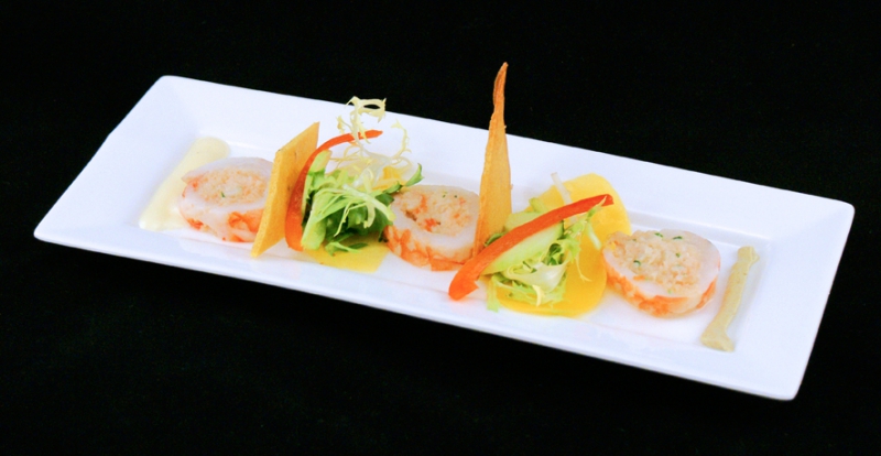- Zet er een klein schaaltje met een KLEIN bolletje ijs naast. Zet op de zwezerik twee chips en bestrooi met ham en truffelsnippers.
