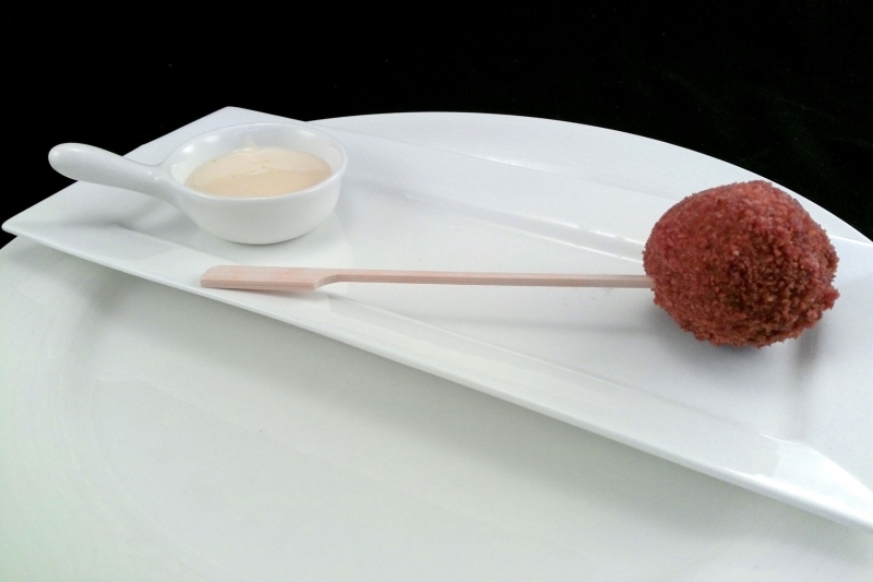 - Serveer het balletje met een prikker op een bordje en serveer met een schaaltje citroenmayonaise.