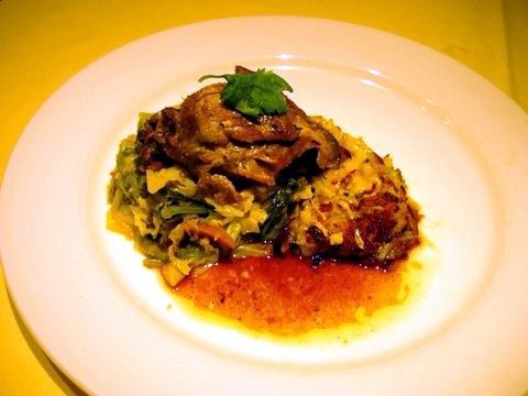 Kwarteltjes met gedroogde vijgen en groene kool en rösti