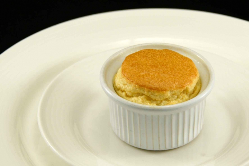 - Kerf aan tafel de souffles in het midden in met een mes en giet er aan tafel wat hete coulis in.