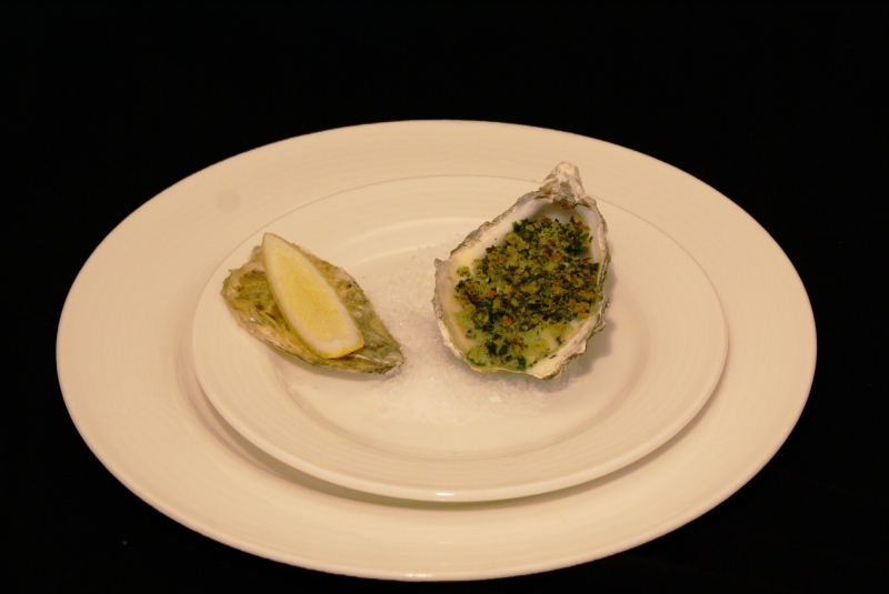 Serveer de Rockefeller oesters op een bordje met zout en partjes citroen.