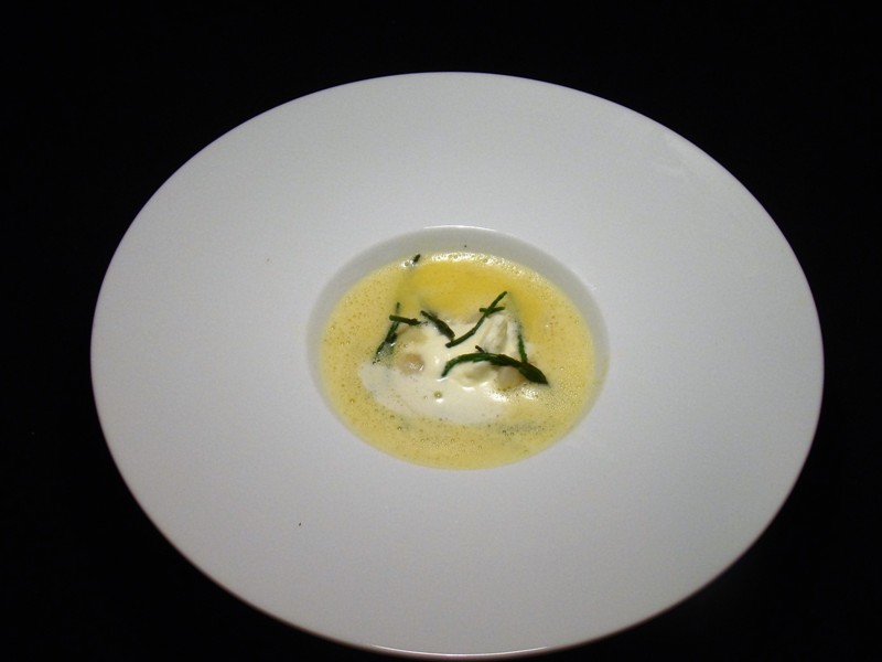 - Werk af met een quenelle pernodroom en wat zeekraal.