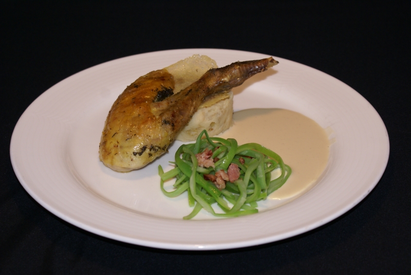 - Leg de parelhoensuprême rechts onderaan op het bord.