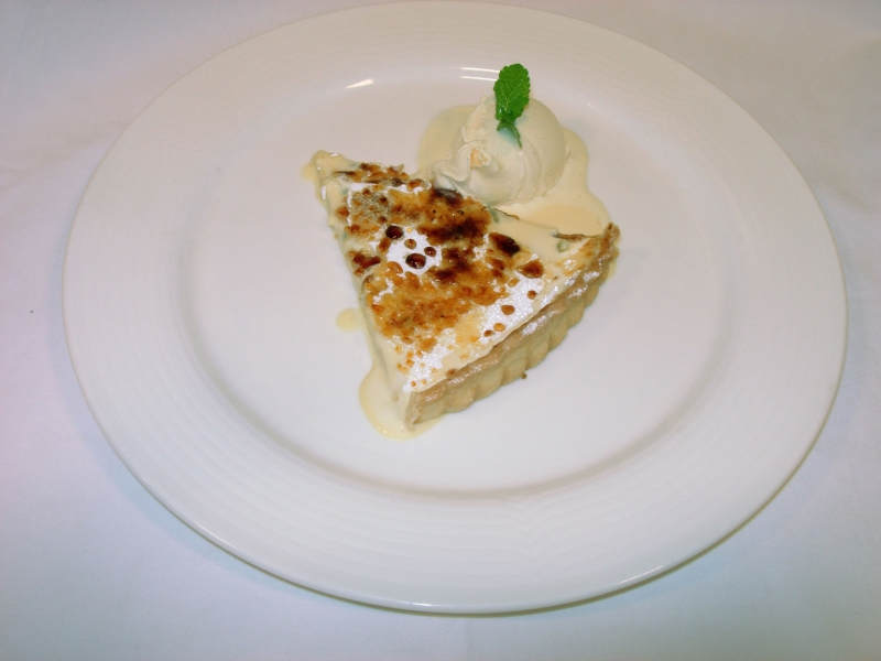 - Snijd 14 puntjes uit de taarten en leg op ieder bord een punt met daarnaast een bolletje vanille ijs.