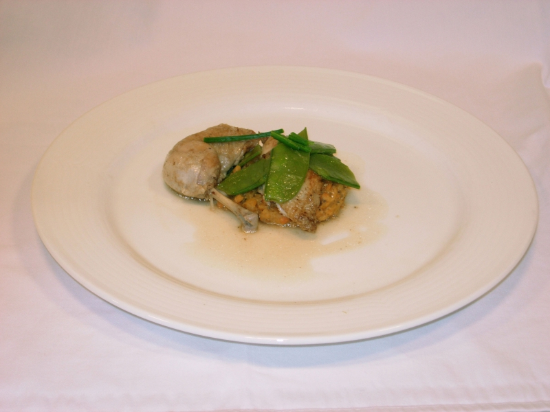 - Braad de pootjes in de olie met boter en blus af met gevogeltefond. Stoof ze gaar.