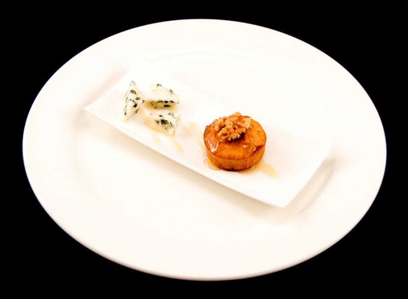 - Leg een mooie plak Roquefort met een muffin op elk bord.