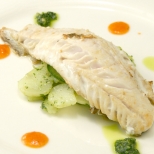 - Rode poon filet: Portioneer de rode poon in stukjes van 60 gr en kerf het vel van de filets in met een scherp mes.