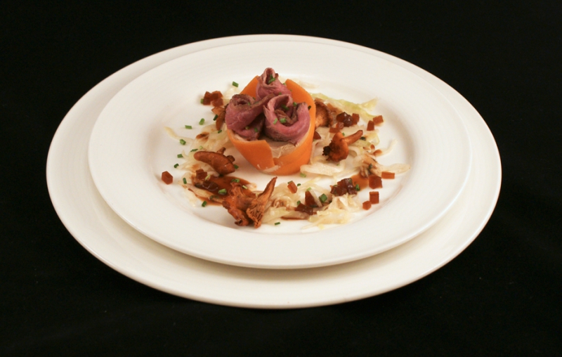 - Dresseer de tartaar als een streep op een warmbord.
