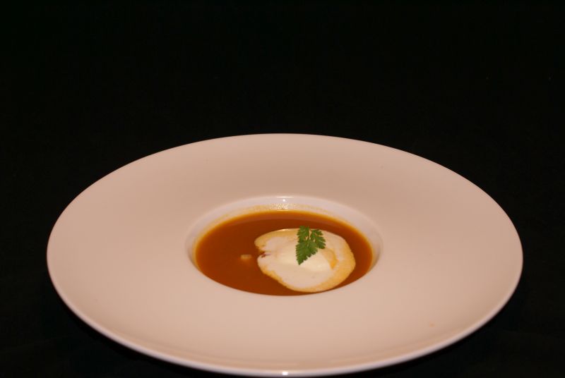 - Schenk er de soep bij en werk af met wat room en een takje kervel.