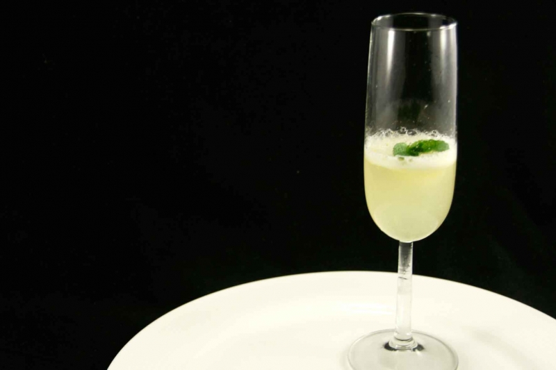 - Leg in een champagneglas een bolletje citroensorbetijs