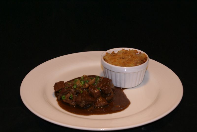 - Plaats een ring op het bord, leg hier het stoofvlees in en verwijder de ring.