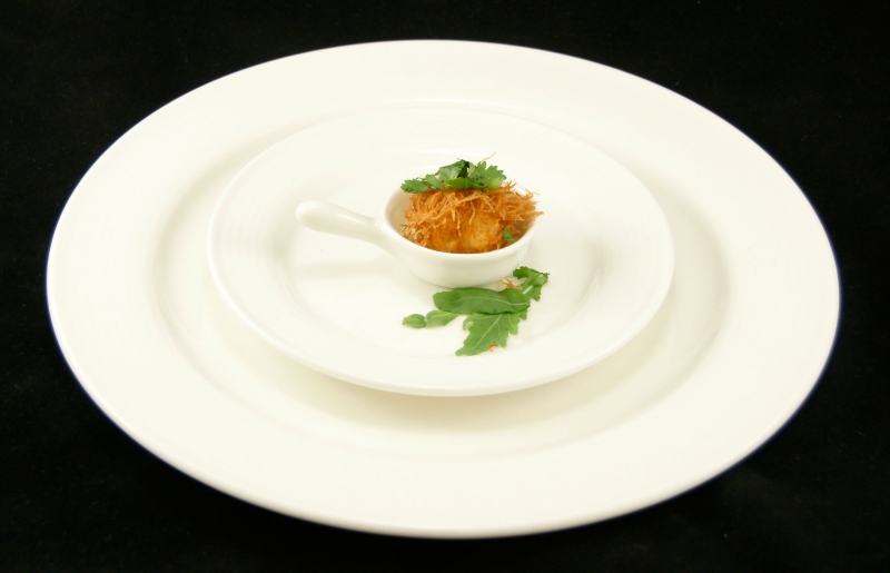 - Leg hierop de grote garnaal en garneer met verse koriander.