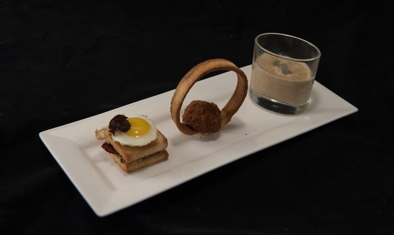 - Sandwich: Snijd 1 plak per persoon op de snijmachine van de gerookte hertencarpaccio en snijd op maat van 4 x 4 cm.