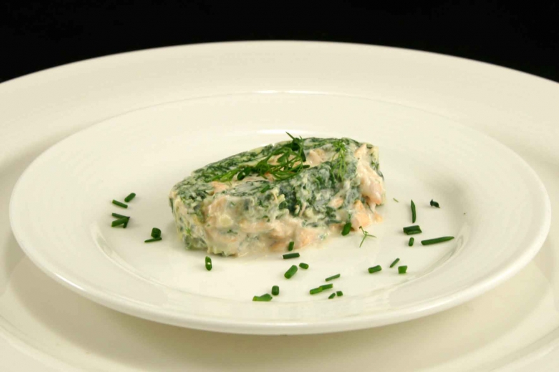 - Smeer het kaasmengsel over het spinaziemengsel, verdeel er de zalmvlokken met tomaat en kruiden over en rol het geheel in de lengte op.