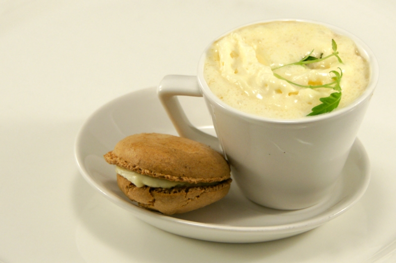 - Schep een lepel soep in amusekopje.