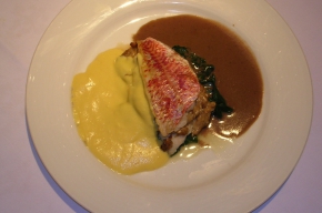 - Verdeel de spinazie over de warme borden en leg hier de mul midden op. Schep de rode wijnsaus over de mul en de hollandaisesaus er omheen.