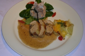 Parelhoenfilet gevuld met Duxelles van Paddenstoelen in Cognac-Truffelsaus