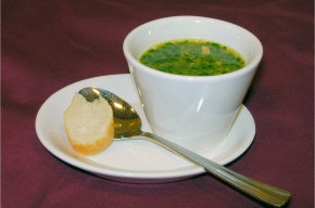 - Verwarm 14 amusekopjes in de warmhoudkast.2.Verdeel de stukjes paling over de kopjes en schenk de soep uit.3.Serveer er een stukje geroosterd stokbrood bij.
