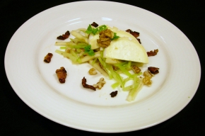 - Leg op de salade 3 ronde plakjes bouquet de moines