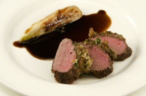 Hertenkalfsfilet met een krokant kastanjekorstje