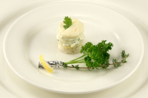 - Garneer het geheel af met een kerriekletskop en Oyster Leaf.