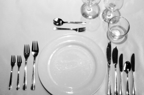 - Leg in het midden een blini met daarop een stukje haring en daarop een beetje brunoise van paprika. Prik er een klein takje rozemarijn in.