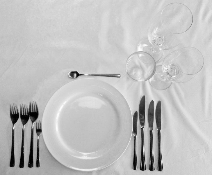 - Gebruik voorverwarmde borden. Leg op ieder bord een ring en lepel daar wat salade in.