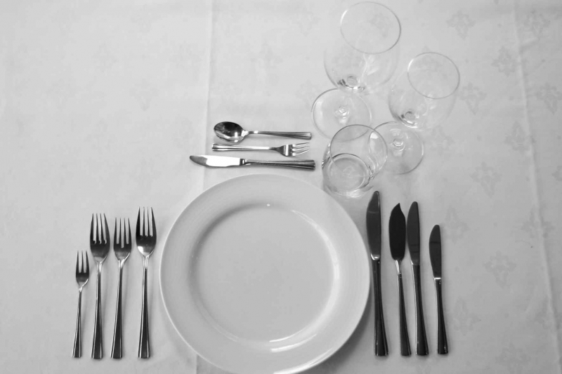 - Neem een langwerpig bordje en plaats hierop het schaaltje met de saus aan de linkerkant.