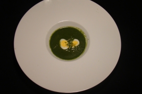 - Soep. Snijd de knoflook fijn en snipper de sjalot. Was de groene asperges en snijd de houtige onderkant eraf. Snijd de asperges in stukjes. Was de spinazie en slinger deze droog.