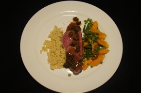 Ossenhaas met morillesaus, fregola sarda en groenten