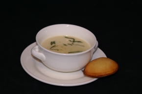 - VLAK VOOR UITSERVEREN: Verwarm de soep en roer er de crème fraîche doorheen.