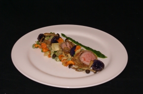 Kalfsmuis in krokante kataifi, quinoa en seizoensgroenten