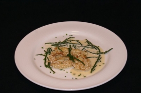 Scholfilet met wijnsaus, zeekraal en tempura van venkel met gepofte quinoa