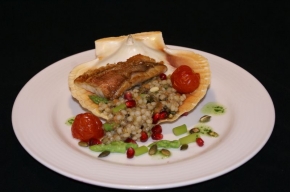 Mulfilet met couscous en gepofte tomaatjes