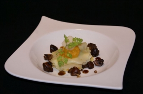 Open ravioli met pompoen, spinazie en kastanjechampignons
