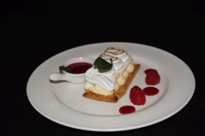 - Presentatie: Leg in het midden van het bord het schuimgebak